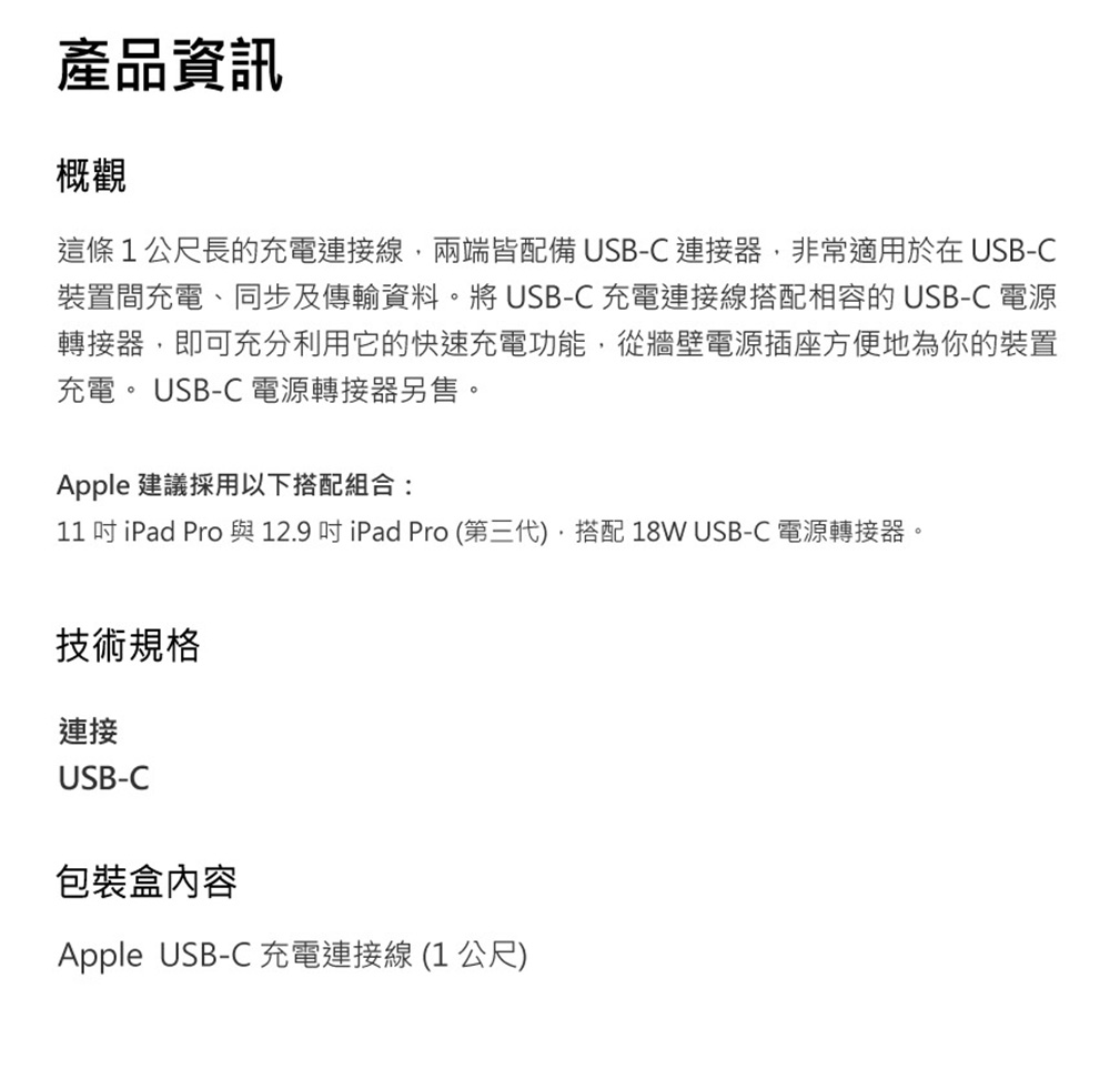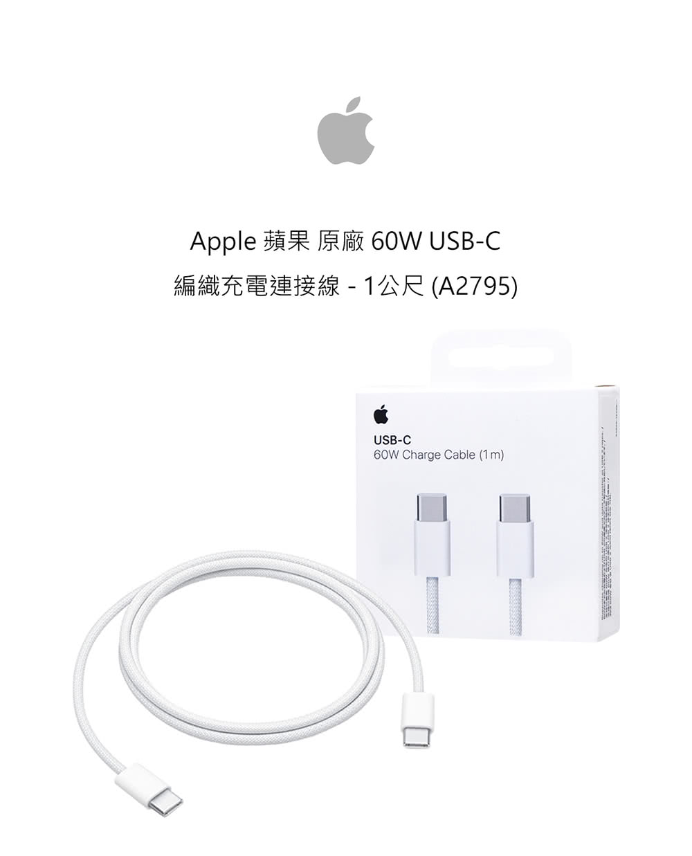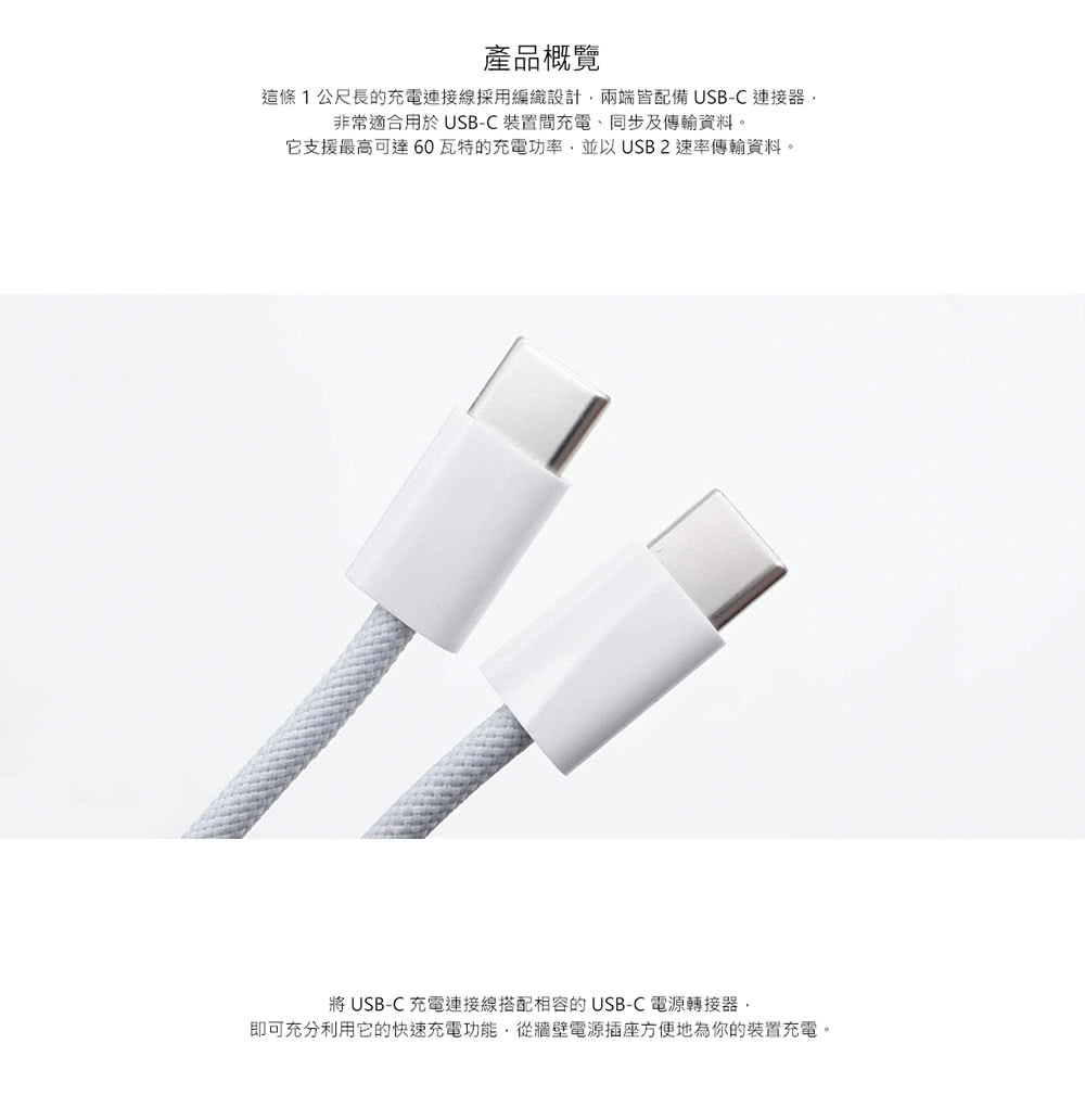 Apple 60W USB-C 編織充電線1m MW493