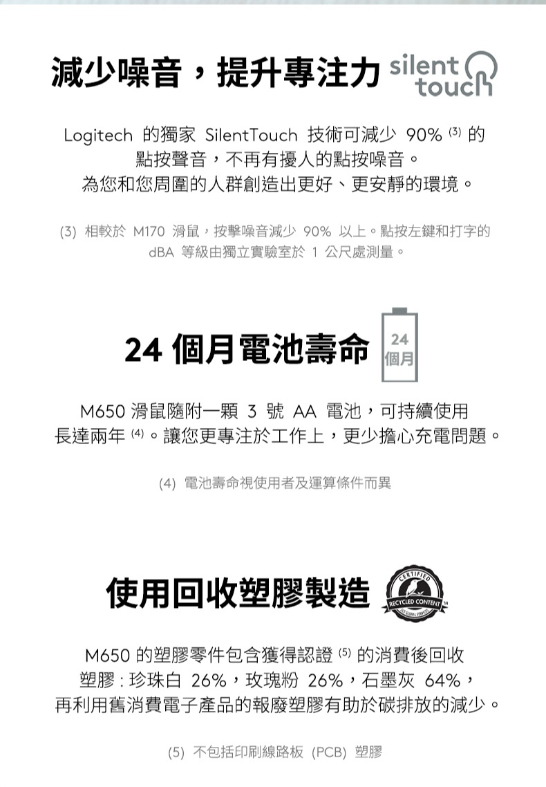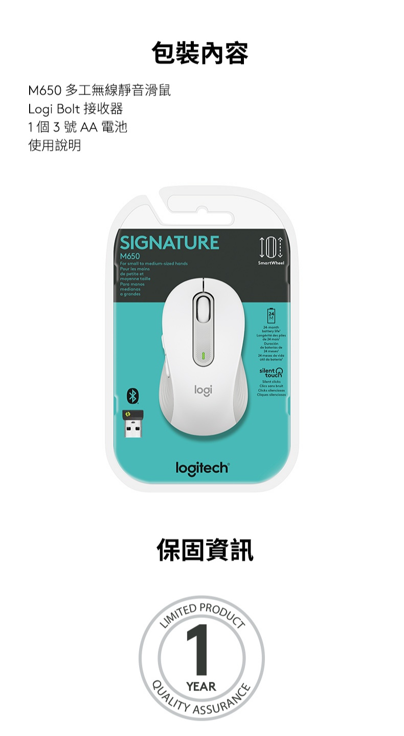 Logitech 羅技 M650 多工靜音無線滑鼠