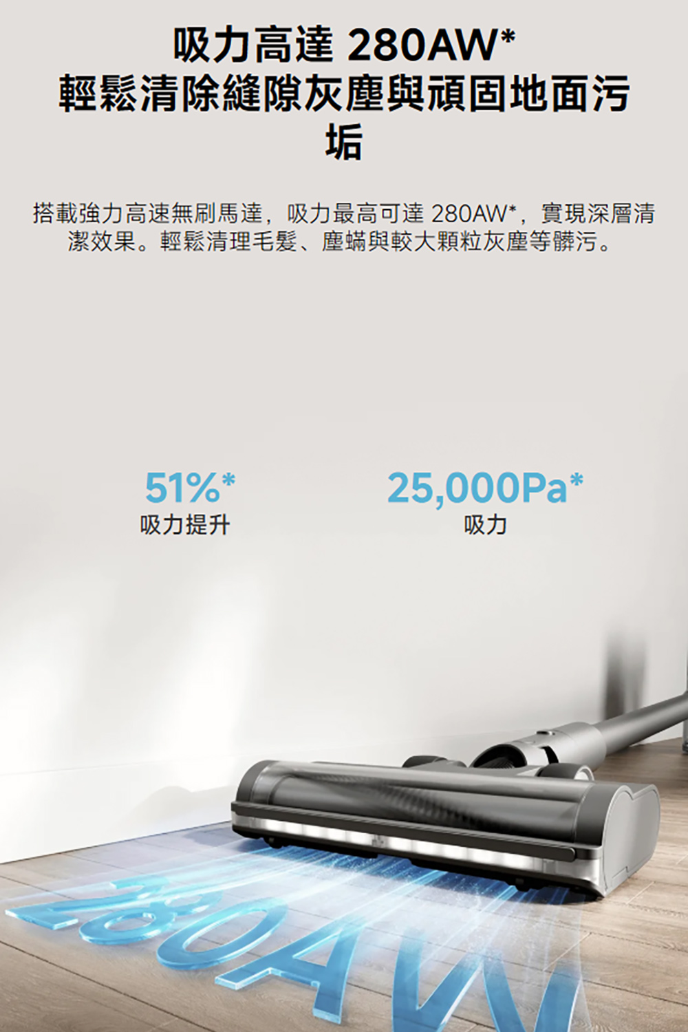- 高達 280AW* 吸力