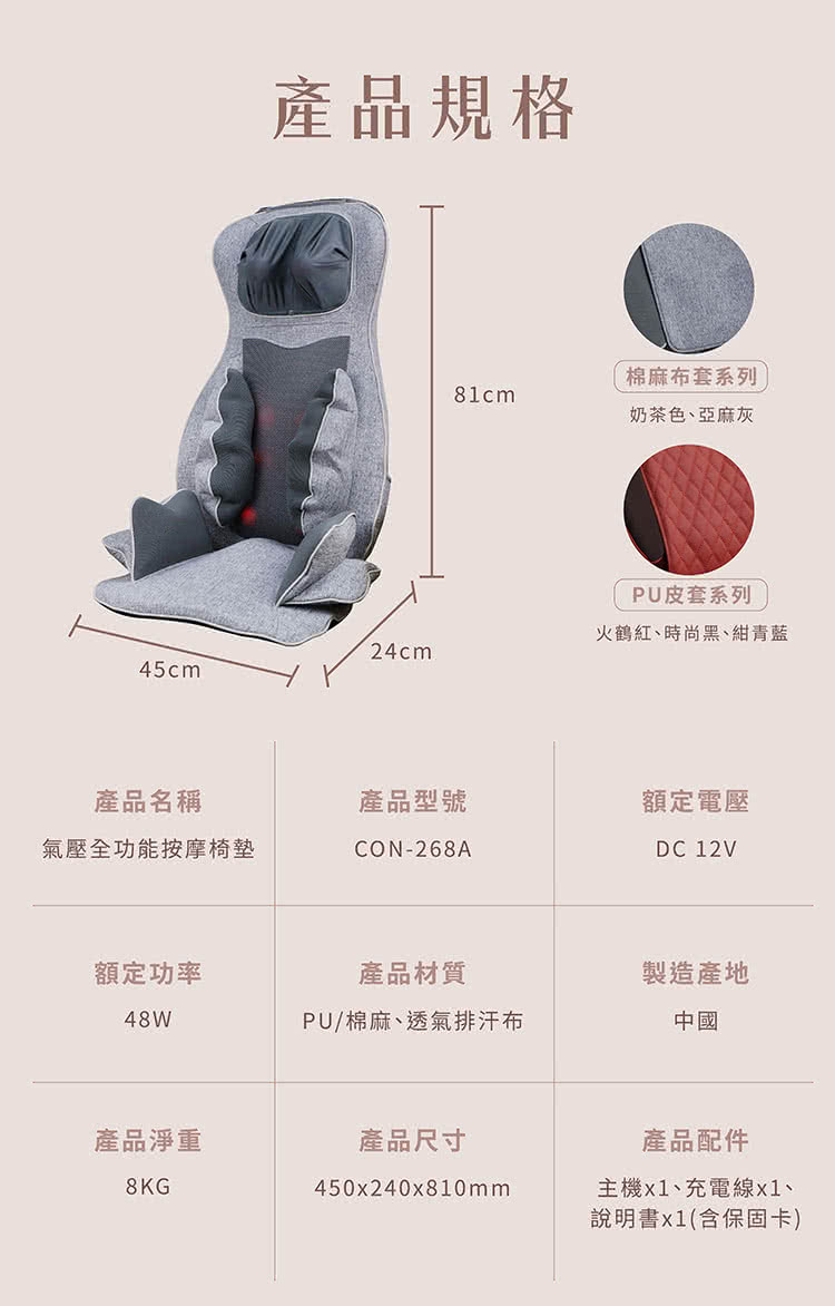 Concern 康生 氣壓揉捶全功能按摩椅墊CON-268A