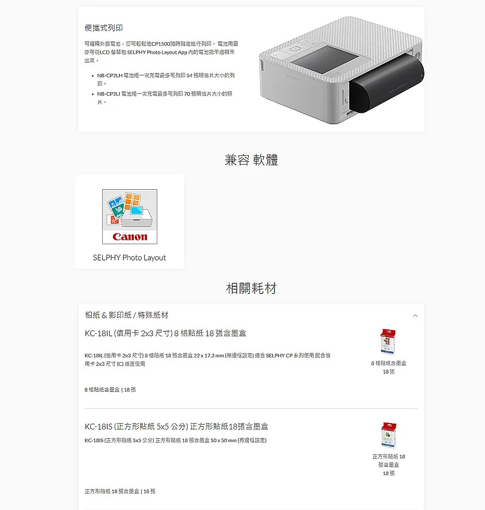 Canon SELPHY CP1500 熱昇華相片印表機(公司貨)二色選