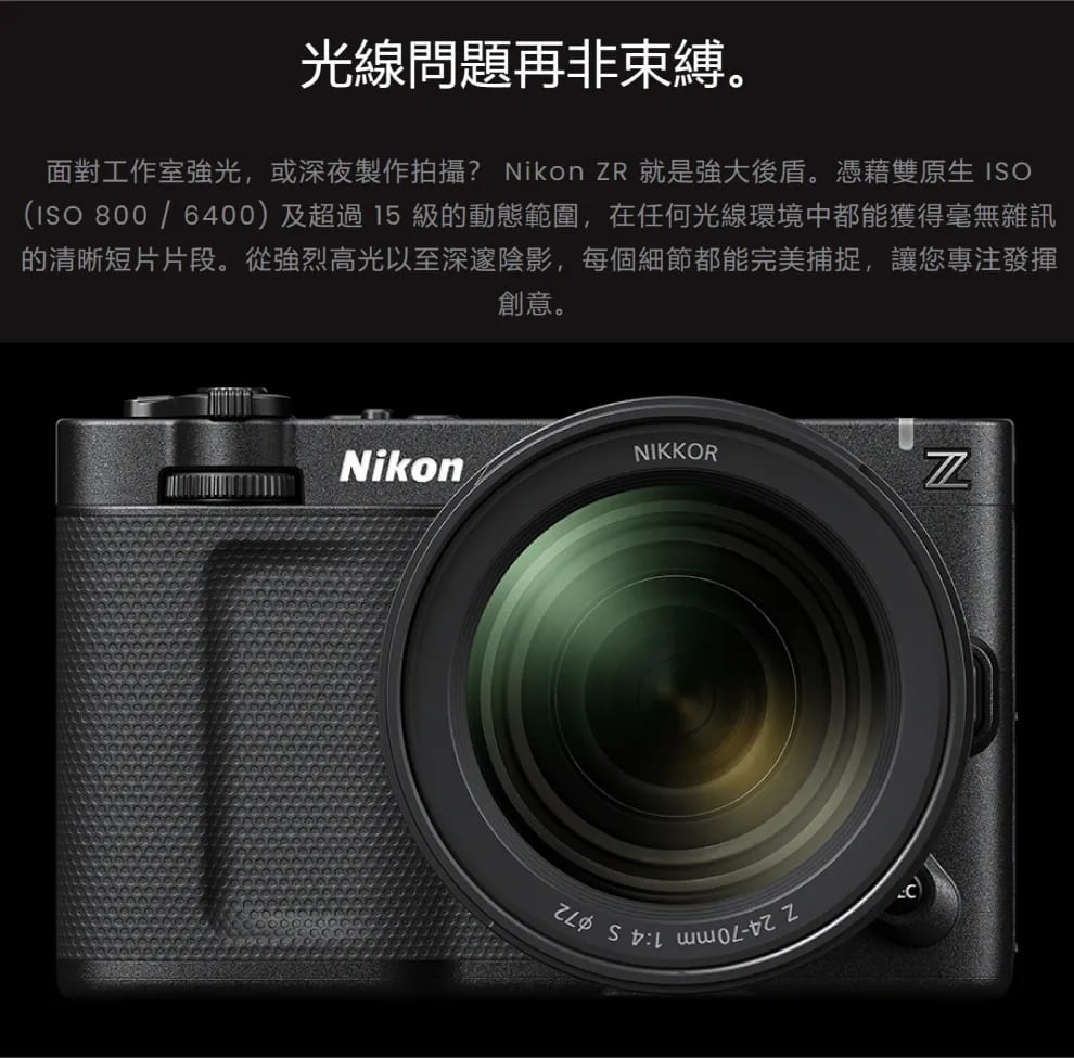 Nikon 尼康 ZR Body+NIKKOR Z 24-70mm F/4 S KIT(公司貨)
