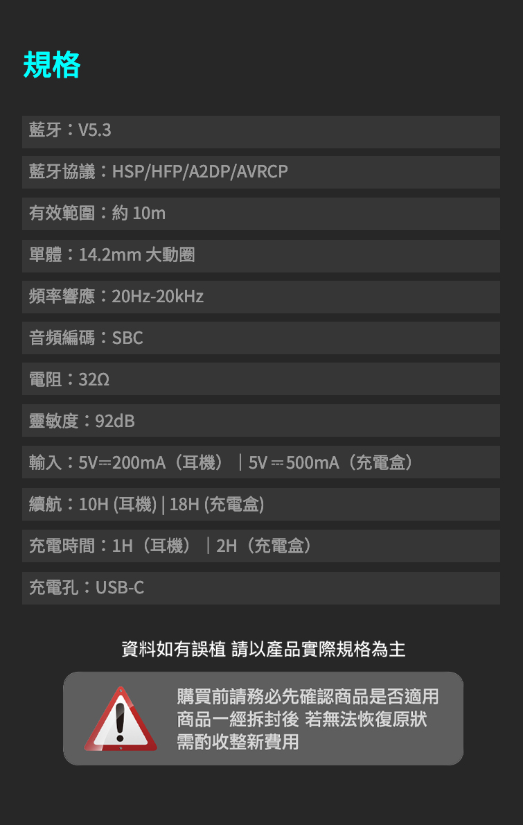 注意事項:《拆封即代表同意以下注意事項,敬請詳閱》