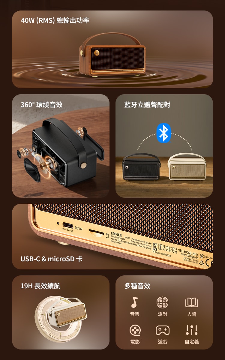 EDIFIER MP330 復古藍牙隨身音箱 (公司貨)