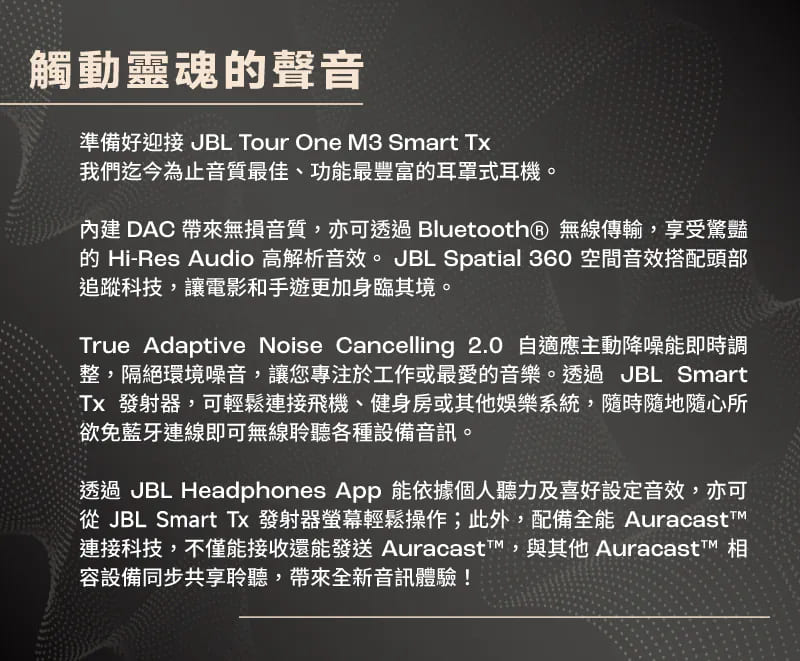 JBL Tour One M3 Smart Tx 耳罩式降噪藍牙耳機 (公司貨)