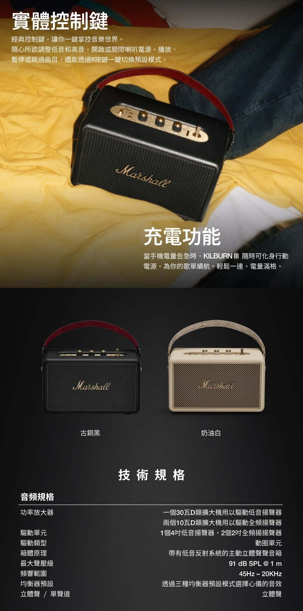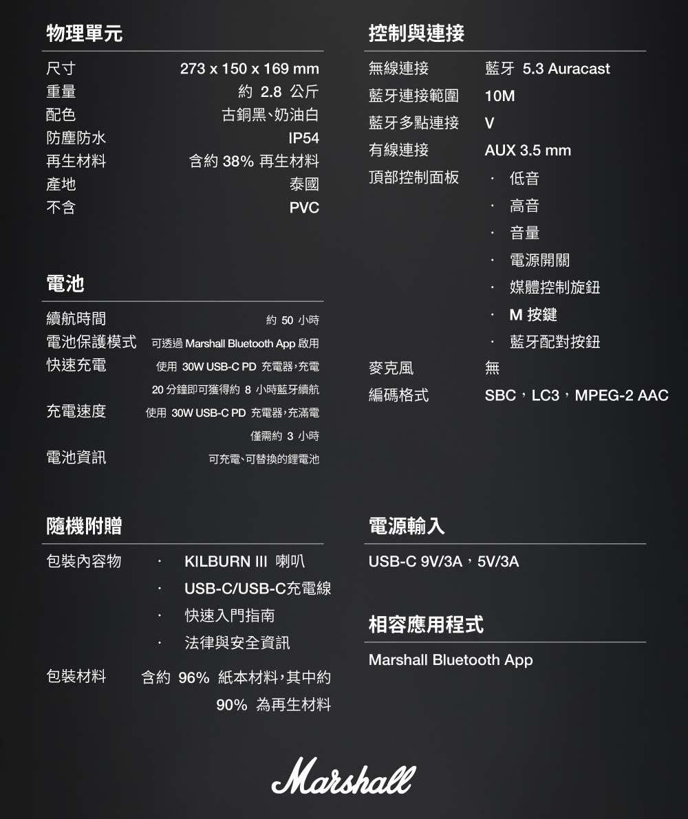 Marshall Kilburn III 攜帶式藍牙喇叭 (公司貨)