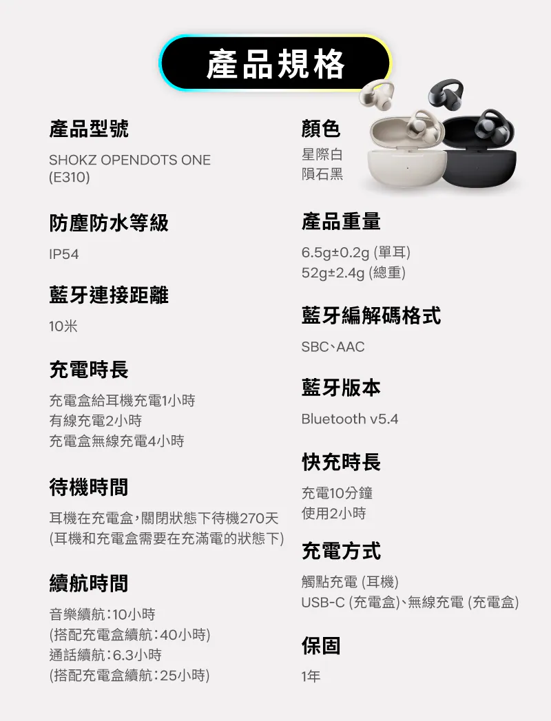 SHOKZ OpenDots ONE E310 開放式耳夾藍牙耳機 (公司貨)