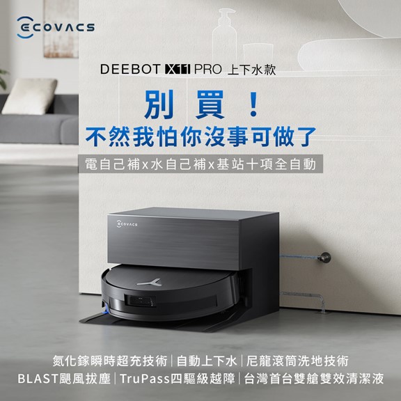 科沃斯 ECOVACS 全新旗艦DEEBOT X11 PRO上下水款 無限續航滾筒洗地機器人