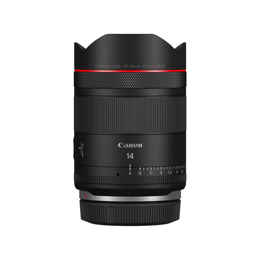 RF14mm F1.4 L VCM 是 Canon F1.4 超大光圈混合型定焦 RF 鏡頭系列中最廣角的鏡頭,其 104° 的超廣角水平視角結合明亮的 F1.4 大光圈,帶來極具張力的構圖效果、出色的低光拍攝表現及細緻柔美的散景效果。鏡頭加入光圈環,方便在拍攝短片時為使用者提供接近電影鏡頭的精確控制。鏡頭是首支加入螢石鏡片的 Canon 超廣角鏡頭,1 片螢石鏡片配合 1 片具有能大幅度折射藍光的異常色散特性的 BR 鏡片、 1 片 UD 鏡片及 3 片 GMo 非球面鏡片大幅校正大光圈時的各種像差,更加入 SWC 次波長結構鍍膜及 ASC 空氣球體鍍膜以減少超廣角鏡頭常見的眩光及鬼影。鏡頭採用高機動性設計,鏡頭連一體式遮光罩的長度為約 112mm 及重量為約 578 克。