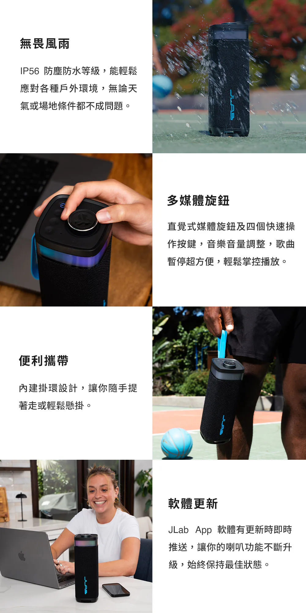 - 防水防護| IP56 防塵防水,應對戶外與潑水情境