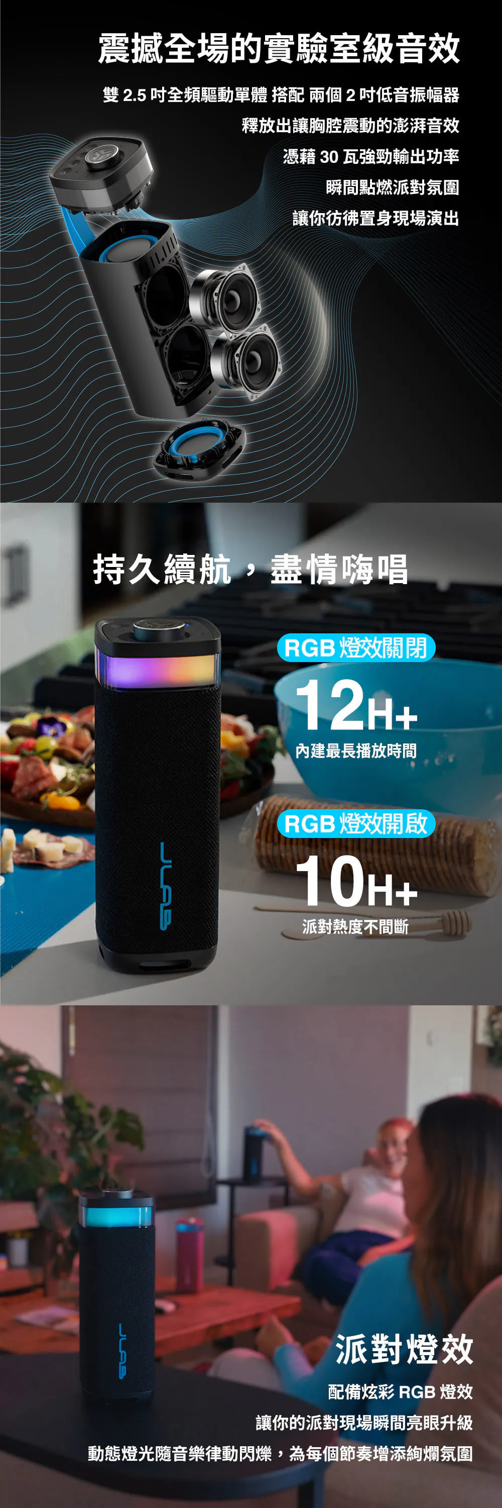 - 強勁輸出|30W 輸出功率音效細節清晰