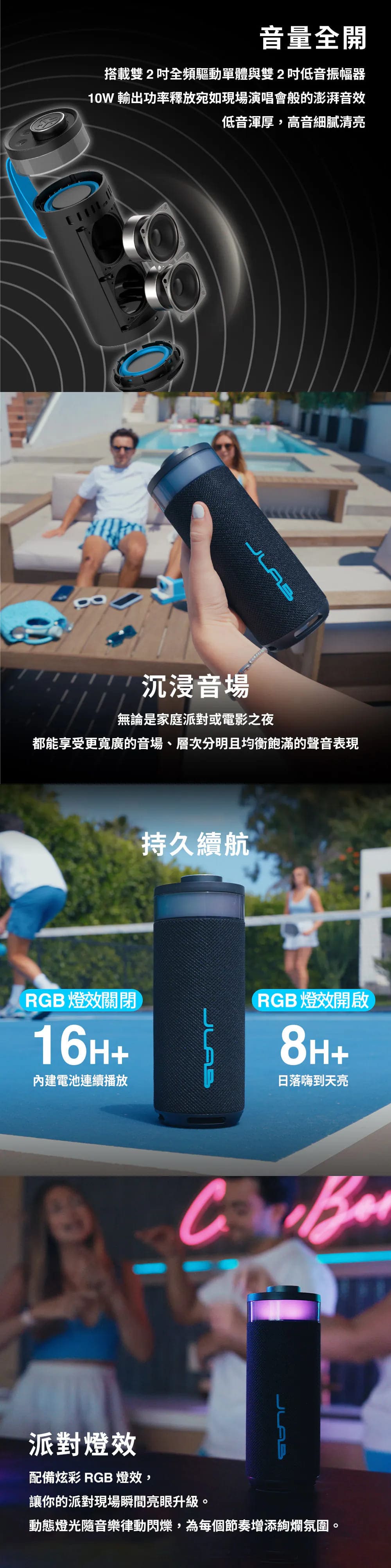 - 音量全開|10W輸出,呈現演唱會級震撼音效