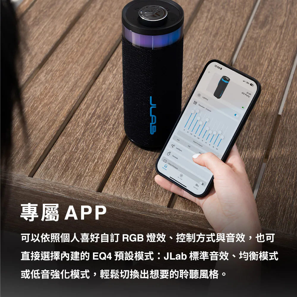 - 專屬調控|JLab App 自訂 EQ、燈效與按鍵功能