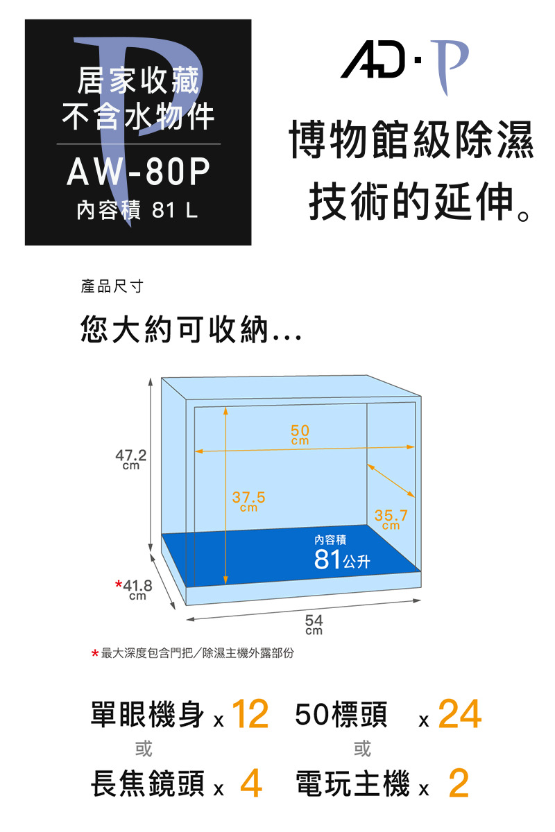 收藏家81公升面寬加長型電子防潮箱 AW-80P