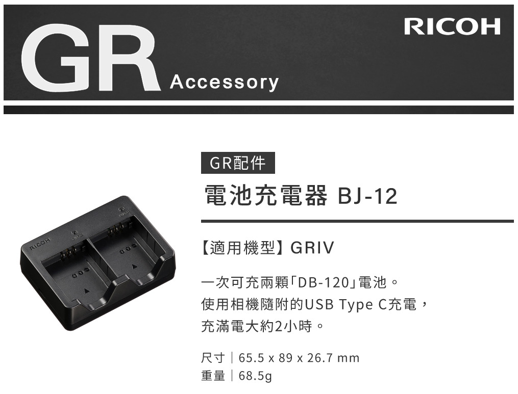 RICOH BJ-12 電池充電器(GR4)公司貨