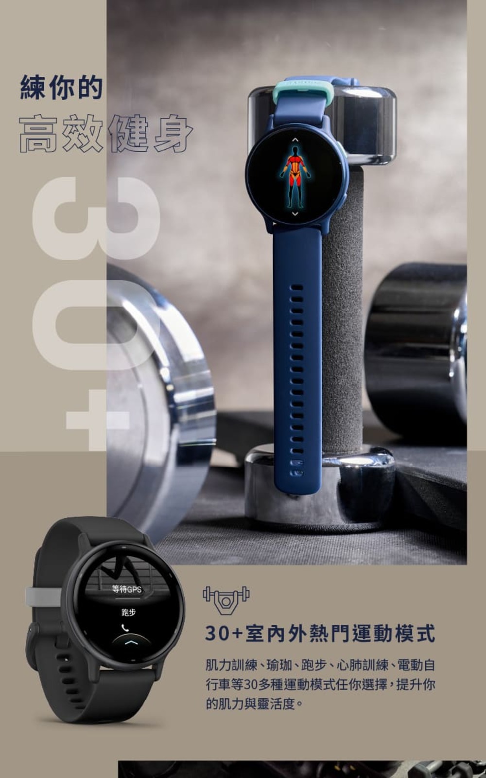 內建 30 多種運動應用程式、訓練及 Garmin Coach