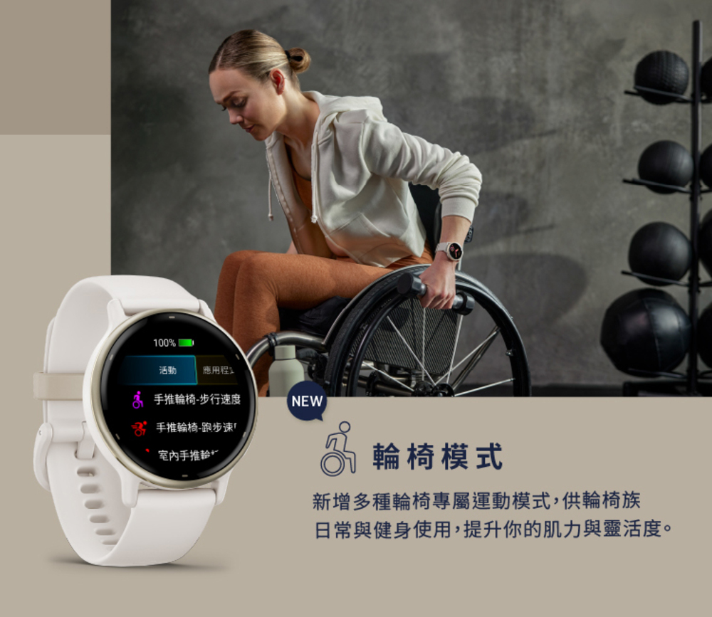 可追蹤推動次數並提供專為輪椅族設計的內建訓練