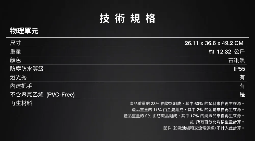IP55防護等級,抗雨珠和灰塵